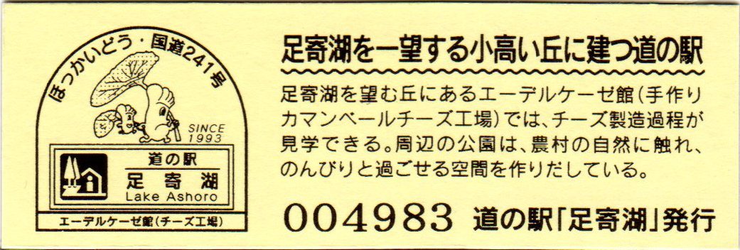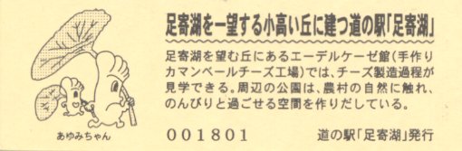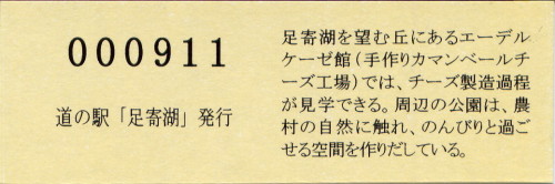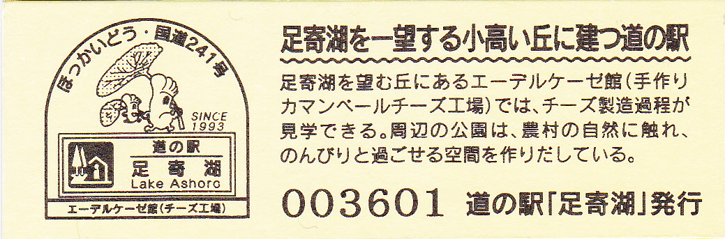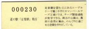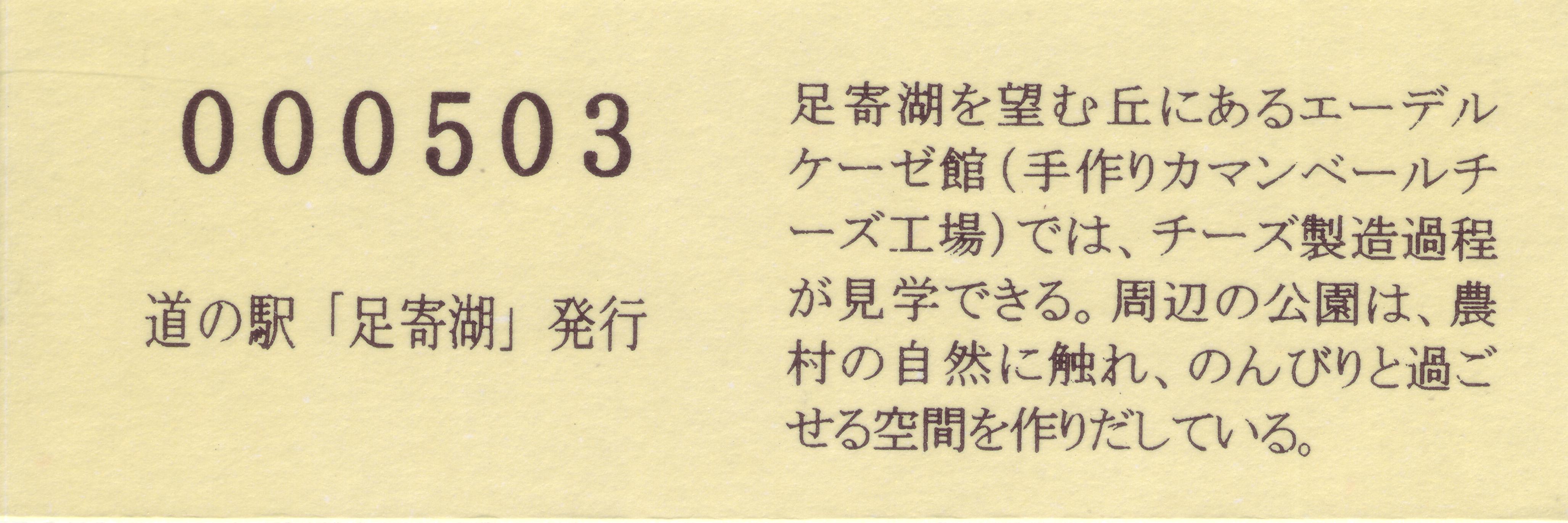 0001-0300:記念入場券(通常券) 0301-0900:記念きっぷ(入) 0901-1200:記念きっぷ(記)<文章のみ・住所左> 1201-1800:記念きっぷ(記)<文章のみ・住所中央> 1801-3000:デザインきっぷ(あゆみちゃん・左) 3001-3600:デザインきっぷ(あゆみちゃん・右) 3601-4900:デザインきっぷ(道の駅スタンプ) 4901-5400:180円きっぷ(道の駅スタンプ・左) 5401-5900?:180円きっぷ(道の駅スタンプ・右)