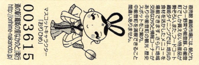 000001~000600 180円きっぷ(道の駅織姫の里なかのと) ![]() | |