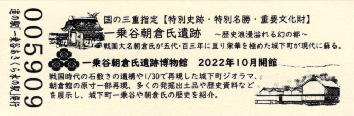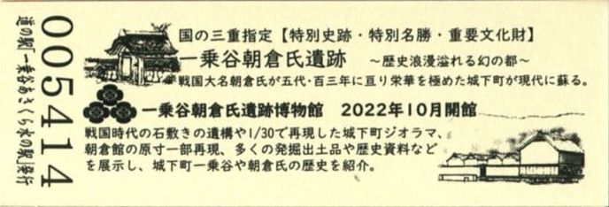 180円きっぷ(一乗谷朝倉氏遺跡)