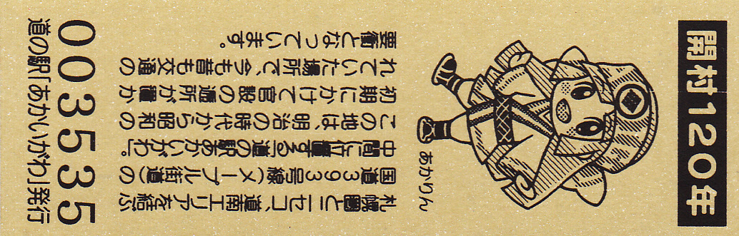 2015.04.30 販売開始0001-3500:180円きっぷ(あかりん・文章縦)3501-4000:180円きっぷ(あかりん・開村120年)4001-4800:180円きっぷ(あかりん・文章横)4801- :200円きっぷ