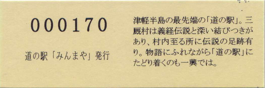 きっぷ関連情報:現在、道の駅「みんまや」の事業管理については財団法人 青函トンネル記念館(館長 駒谷徳正)が任にあたっております。 | |