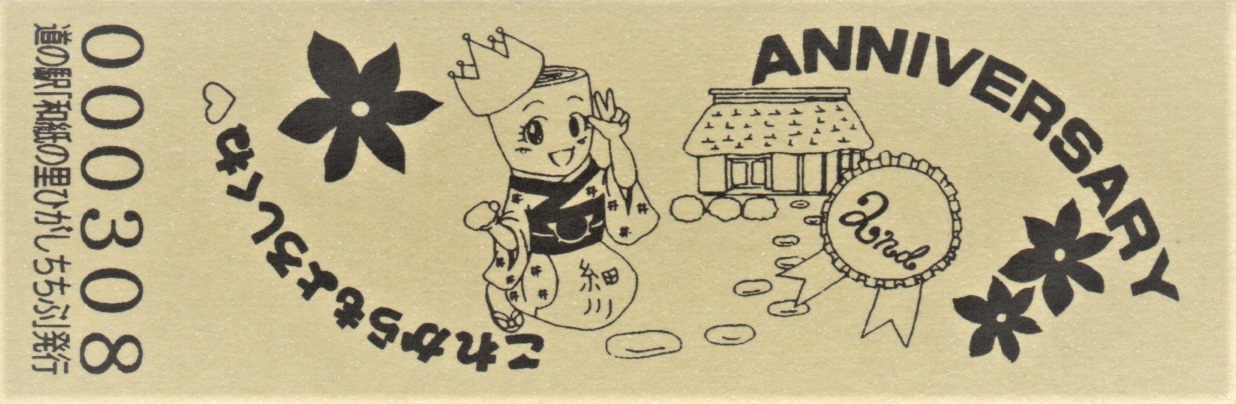 記念きっぷは「和紙の里特産品直売所」レジにて16:00まで販売(同居の観光案内所カウンターではありません)。