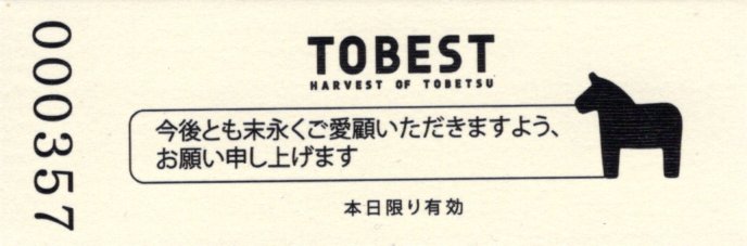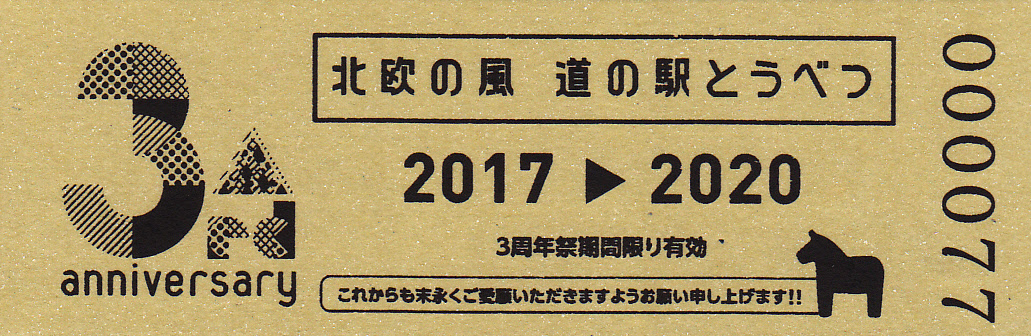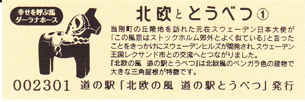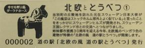 000001-002300:180円きっぷ(最終行「開業します」) 002301-005100:180円きっぷ(最終行「大きな三角屋根が特徴です」) 005101-005600:200円きっぷ(ダーラナホース) 005601- :200円きっぷ(とべのすけ)