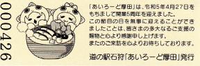 2018.04.27 販売開始000001-004800:180円きっぷ004801- :200円きっぷ000001-000300:開業1周年記念きっぷ(配布終了)000301-000600:開業5周年記念きっぷ(配布終了)