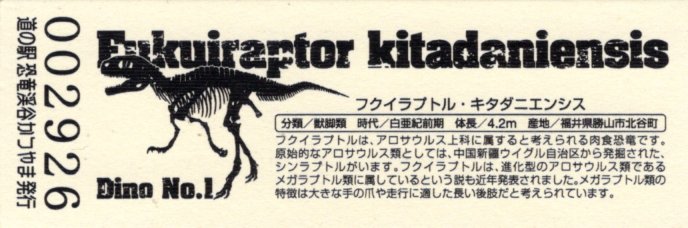 000901~002900 180円きっぷ(フクイラプトル・キタダニエンシス)