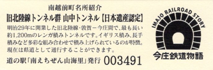 000901~001900 180円きっぷ(旧北陸線トンネル群)