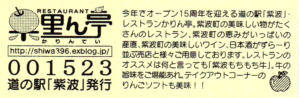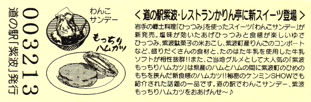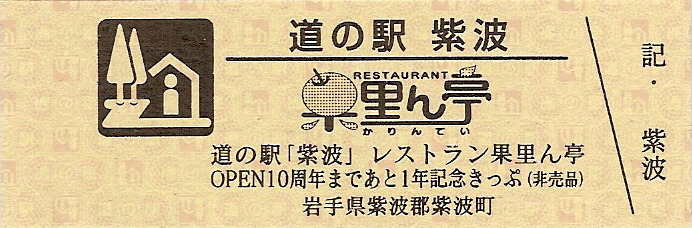 001501~001900 (特)道の駅「紫波」・レストラン「かりん亭」オープン15周年記念きっぷ