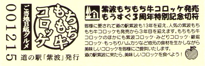 001201~001500 (特)紫波もちもち牛コロッケ発売もうすぐ3周年特別記念切符