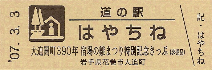 000301~000600 (特)大迫開町390年宿場の雛まつり特別記念きっぷ