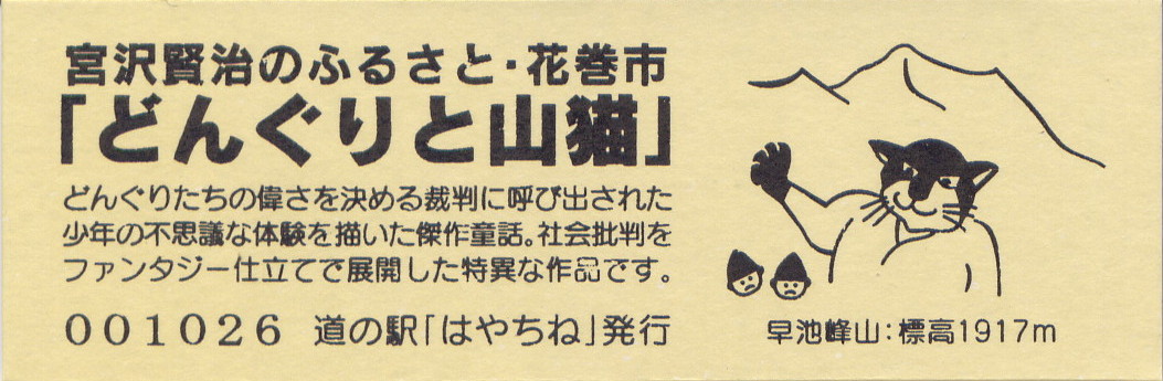 000901~001200 (特)早池峰山 山開き特別記念きっぷ(どんぐりと山猫)