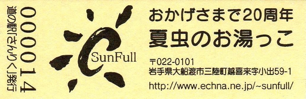 000001~000300 (特)夏虫のお湯っこ20周年記念きっぷ ![]() | |