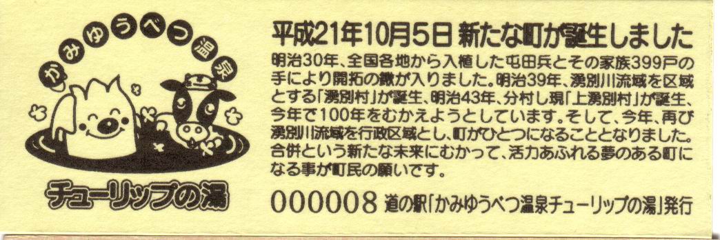 003601~004000 デザインきっぷ(チューリップの湯・牛なし・上湧別町)