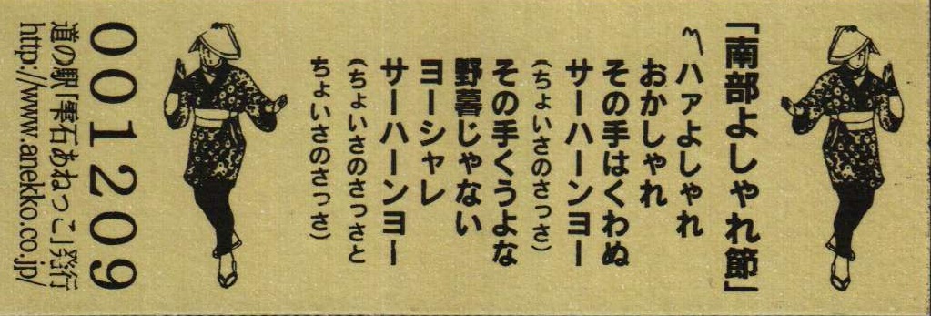 000901~001200 180円きっぷ(南部よしゃれ節・踊り子内向き)