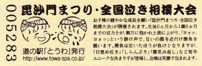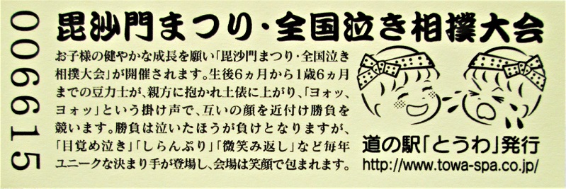 000601~ (特)毘沙門まつり〜全国泣き相撲大会〜記念きっぷ(東和温泉)