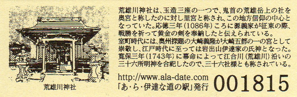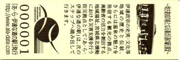 000001~000300 180円きっぷ(伊達な小京都・岩出山)