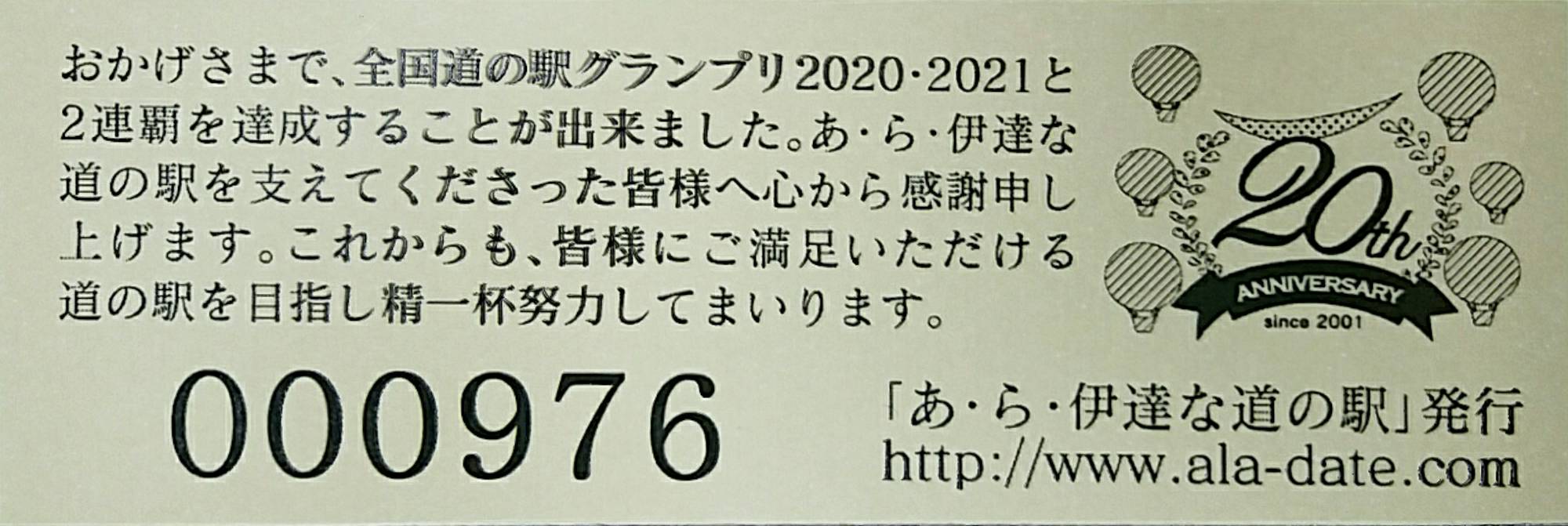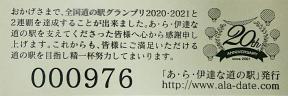 000901~001200 (特)全国道の駅グランプリ2021 グランプリ獲得特別記念きっぷ