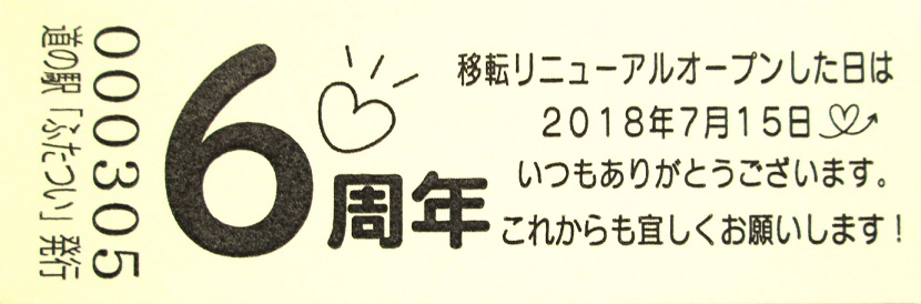 000301~000600 (特)移転リニューアル6周年記念切符