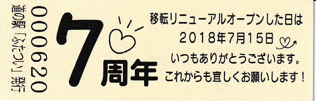 000601~ (特)移転リニューアル7周年記念切符