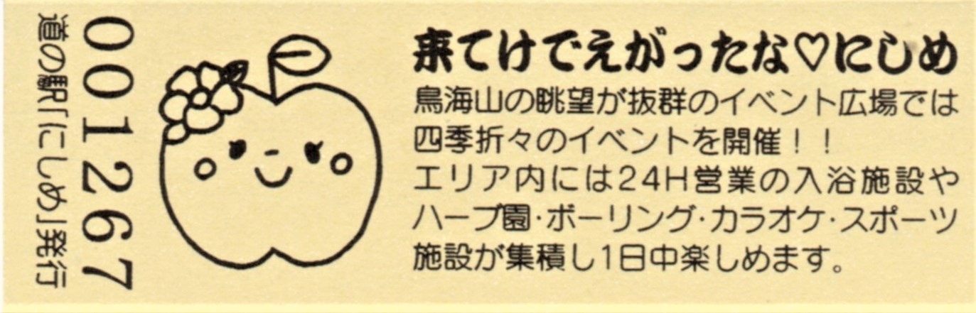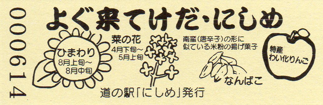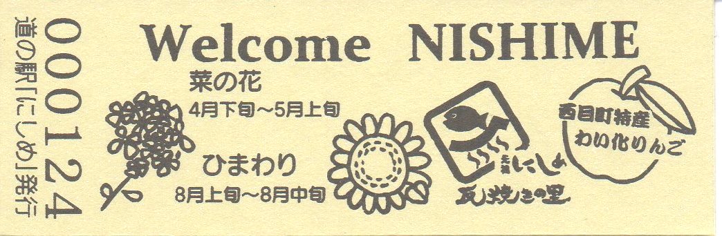 000001~000600 180円きっぷ(Welcome NISHIME) ![]() | |