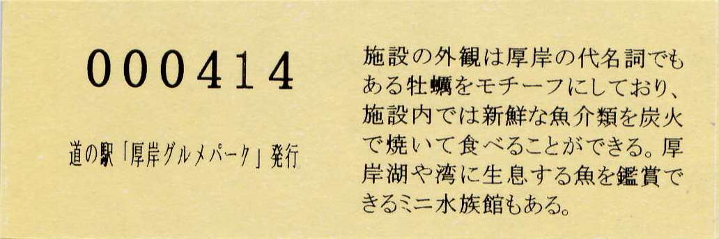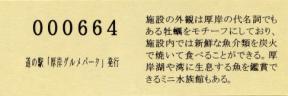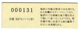 0001-0300:記念入場券(通常券) 0301-0600:記念きっぷ(入) 0601-0900:記念きっぷ(記)<住所左> 0901-2700:記念きっぷ(記)<住所中央> 2701-3100:デザインきっぷ(カントリーサイン) 3101-3600:デザインきっぷ(ゼニガタアザラシ・左) 3601-3900:デザインきっぷ(ゼニガタアザラシ・右) 3901-4500:デザインきっぷ(建物) 4501-4800:デザインきっぷ(オーイ★スター君) 4801-9200:180円きっぷ 9201- :200円きっぷ