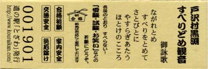 001901~002200 (特)戸沢村「黒渕すべりどめ観音」特別記念きっぷ