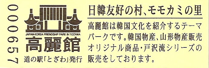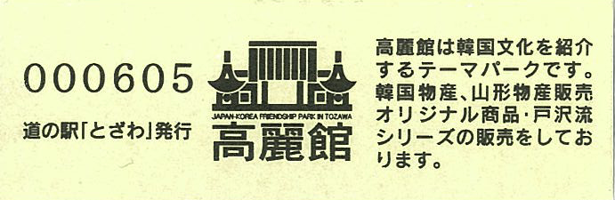 001601~001900 (特)最上峡芭蕉ライン観光「高麗館」運営六周年記念切符