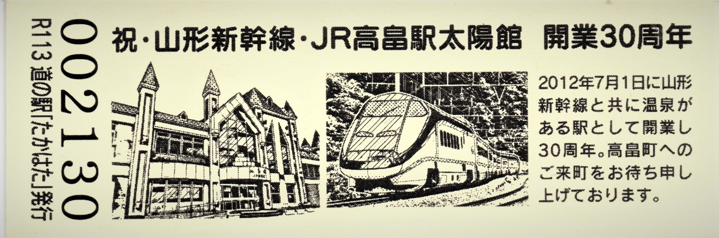 002101~002400 (特)山形新幹線・高畠駅太陽館 開業30周年記念きっぷ
