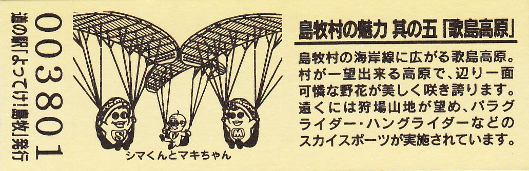 003801~004100 デザインきっぷ(歌島高原・シマくんマキちゃん・左)