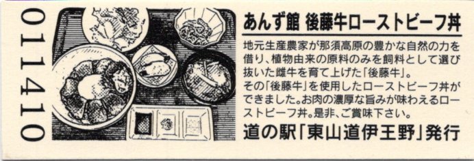 011301~011600 180円きっぷ(あんず館 後藤牛ローストビーフ丼)