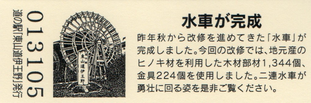 013401~ 200円きっぷ(地場産木材の巨大水車完成)