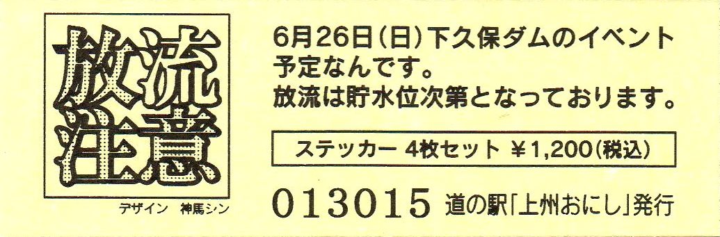 013001~013300 180円きっぷ(放流注意ステッカー)