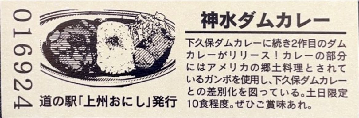 012101~012400 180円きっぷ(下久保ダムカレー)