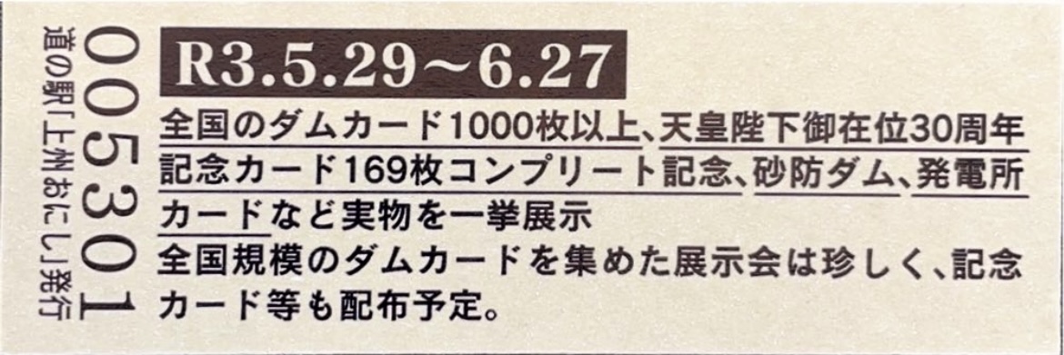 005301~005600 (特)全国ダムカード展inふじおかat道の駅上州おにし