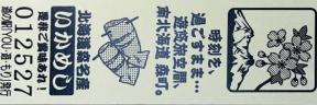 000001-000300:記念入場券(ピンク券) 000301-000900:記念きっぷ(入) 000901-001200:記念きっぷ(記)<住所左> 001201-001800:記念きっぷ(記)<住所中央> 001801-002100:記念きっぷ(記)<裏面文字位置変更> 002101-002400:デザインきっぷ(ひじかた君) 002401-002700:デザインきっぷ(駒ヶ岳・桜両側・枠なし) 002701-003000:デザインきっぷ(カントリーサイン・左) 003001-003300:デザインきっぷ(カントリーサイン・右) 003301-003600:デザインきっぷ(駒ヶ岳・ひまわり) 003601-003800:デザインきっぷ(駒ヶ岳・イチョウもみじ) 003801-004100:デザインきっぷ(レッツハイキングゥ〜) 004101-004400:デザインきっぷ(駒ヶ岳・栗) 004401-004600:デザインきっぷ(シンボルマーク) 004601-004800:デザインきっぷ(駒ヶ岳・枠あり・左) 004801-005100:デザインきっぷ(駒ヶ岳・花火) 005101-005600:デザインきっぷ(駒ヶ岳・桜左のみ) 005601-005800:デザインきっぷ(いかめし・桜) 005801-006000:デザインきっぷ(いかめし・鳥) 006001-006300:デザインきっぷ(花見) 006301-006600:180円きっぷ(いかめし・駒ヶ岳・ひまわり) 006601-006900:180円きっぷ(駒ヶ岳・枠あり・右) 006901-007200:180円きっぷ(駅名標左・いかめし右) 007201-007500:180円きっぷ(いかめし・桜・方言) 007501-007800:180円きっぷ(いかめし・鳥) 007801-008100:180円きっぷ(桜・いかめし・縦) 008101-008400:180円きっぷ(駅名標右・いかめし左) 008401-008700:180円きっぷ(いかめし・桜枠なし・縦) 008701-009300:180円きっぷ(駒ヶ岳・桜両側・枠なし) 009301-009600:180円きっぷ(桜枠なし・いかめし・縦) 009601-010500:180円きっぷ(いかめし・桜枠&網掛けなし・縦) 010501-010900:180円きっぷ(いかめし・桜枠&網掛けなし・横) 010901-011200:180円きっぷ(駒ヶ岳・野菜類・果物類) 011201-011500:180円きっぷ(駒ヶ岳・いかめし・駅名標) 011501-012000:180円きっぷ(道の駅外観・いかめし) 012001-012500:180円きっぷ(いかめし・駒ヶ岳・道の駅外観) 012501-013000:180円きっぷ(駒ヶ岳・いかめし・駒ヶ岳雪景色・縦) 013001-013500:200円きっぷ(道の駅外観左・スタンプ右) 013501-014000:200円きっぷ(オニウシ公園左・スタンプ右上・いかめし右下) 014001- :200円きっぷ(駒ヶ岳・道の駅外観・いかめし)