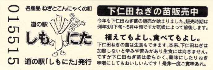 015401~015700 180円きっぷ(下仁田ねぎの苗販売中)