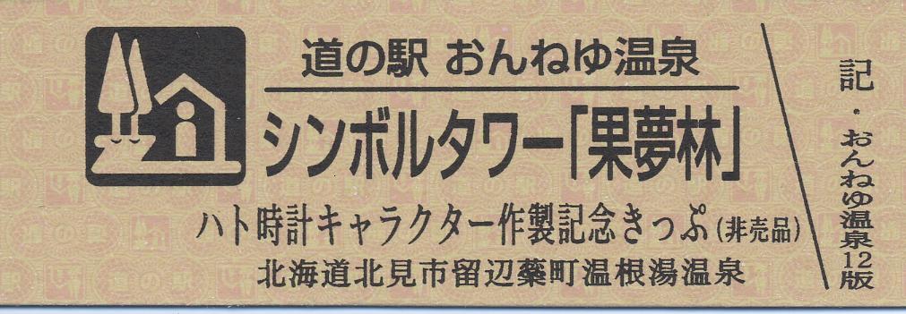 000001-000500:記念入場券(ピンク券) 000501-001100:記念きっぷ(入) 001101-001400:記念きっぷ(記・留辺蘂町)<住所左> 001401-001700:記念きっぷ(記・留辺蘂町)<住所中央> 001701-002000:記念きっぷ(記・北見市)<北見市留辺蘂町> 002001-002600:記念きっぷ(記・北見市)<北見市> 002601-003500:デザインきっぷ(果夢林の仲間・文字最後「見もの」) 003501-003800:デザインきっぷ(果夢林の仲間・最優秀グッズイラスト賞) 003801-004600:デザインきっぷ(果夢林の仲間・文字最後「見ものです」) 004601-005200:デザインきっぷ(果夢林の仲間とハト) 005201-006000:デザインきっぷ(シンボルタワー果夢林・演奏中) 006001-006500:デザインきっぷ(シンボルタワー果夢林・演奏後) 006501-006800:180円きっぷ(シンボルタワー果夢林) 006801-007300:180円きっぷ(地図) 007301-007800:180円きっぷ(山の水族館) 007801-009000:180円きっぷ(果夢林と花菖蒲) 009001-009300:180円きっぷ(果夢林だけ) 009301-010300:180円きっぷ(果夢林1時間毎) 010301-011200:180円きっぷ(北の大地の水族館) 011201- :200円きっぷ(北の大地の水族館)