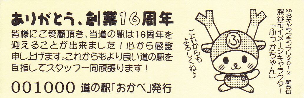 008601~008900 180円きっぷ(オープン20周年・ふっかちゃんあり)