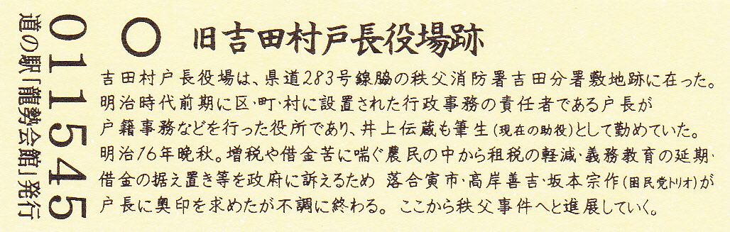 011501~011800 180円きっぷ(旧吉田村戸長役場跡)