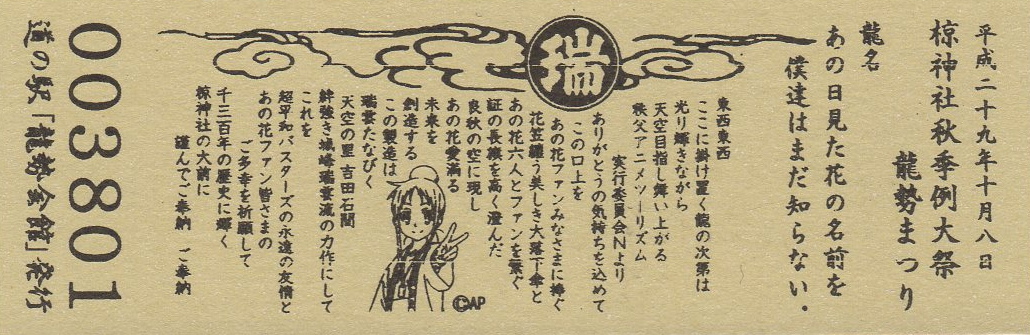015701~016000 デザインきっぷ(超平和バスターズ龍勢奉納記念)