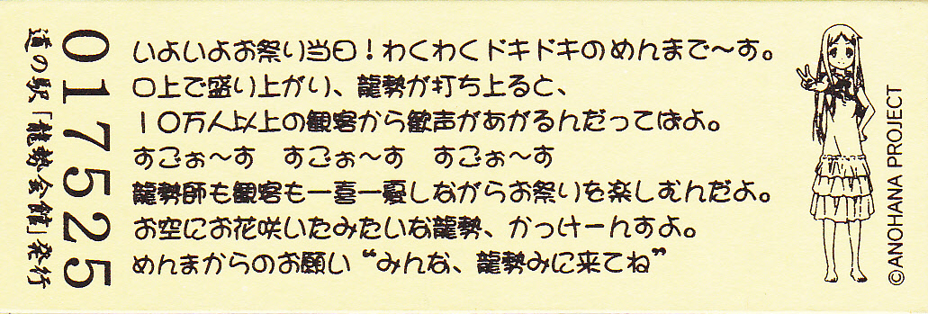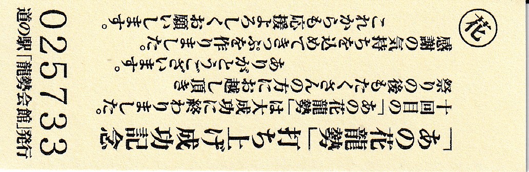 025701~026000 200円きっぷ(「あの花龍勢」打ち上げ成功記念)