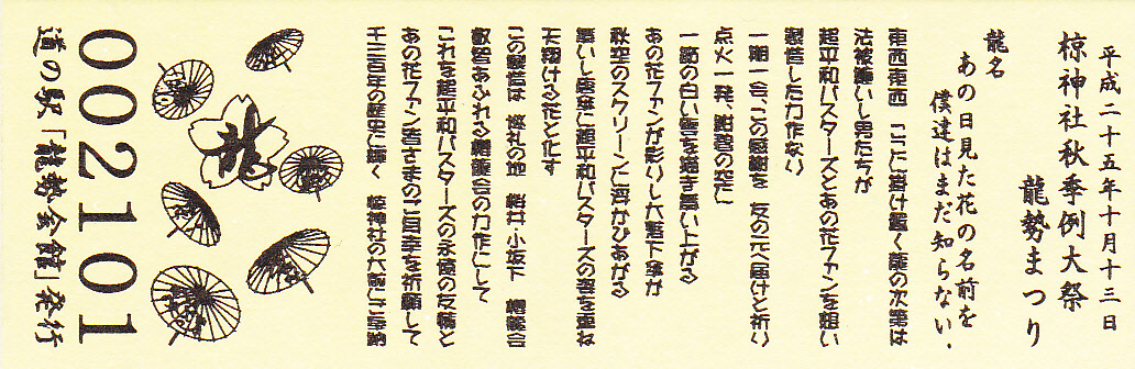 013001~013600 デザインきっぷ(椋神社の龍勢)