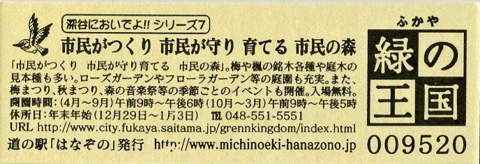 009201~009500 180円きっぷ(ふかや緑の王国?)