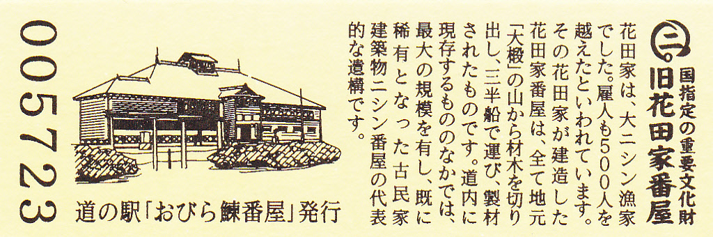 004801~005400 180円きっぷ(旧花田家番屋・左・文章横書き)