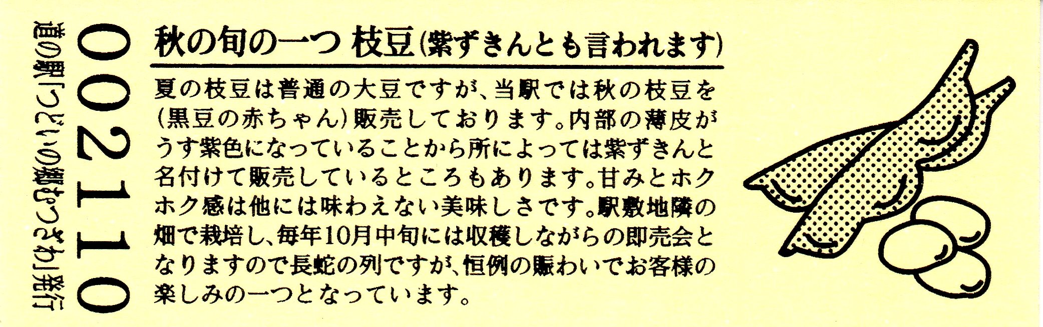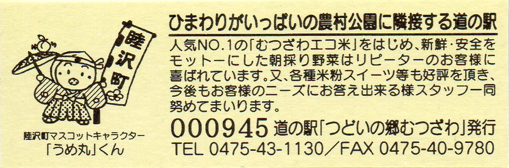 2012.07.07 販売開始 2019.09.01 駅名変更・新築移転 2019.10.01 リューアルオープン 2020.01.11 販売開始(「むつざわ つどいの郷」版)