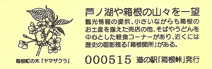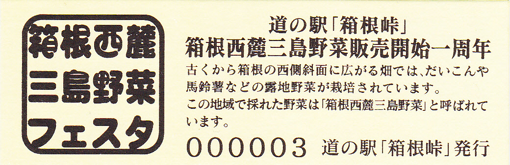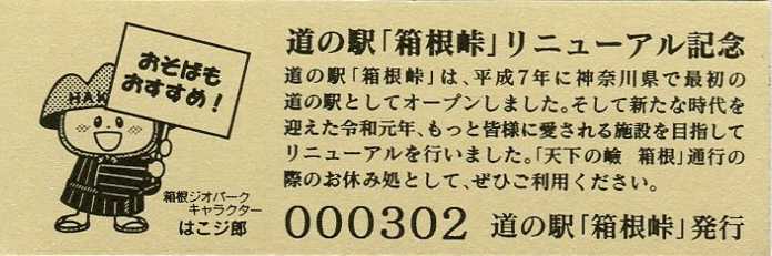 000301~000600 (特)道の駅 箱根峠 リニューアル記念きっぷ
