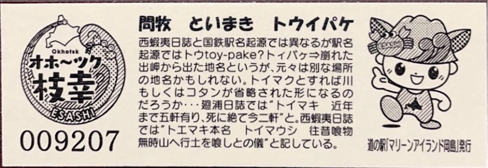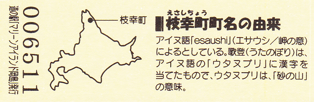 006501~006800 180円きっぷ(枝幸町町名の由来)