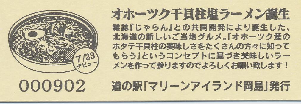 000901~001200 (特)オホーツク干貝柱塩ラーメン記念切符