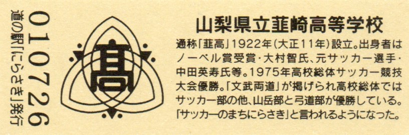 010601~011100 180円きっぷ(山梨県立韮崎高等学校)