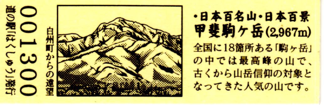 001201~001500 180円きっぷ(甲斐駒ケ岳)