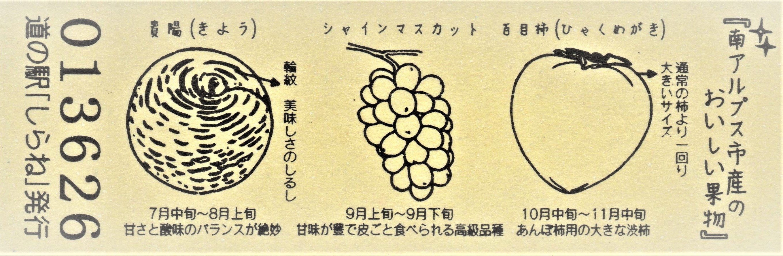 013601~013900 180円きっぷ(南アルプス市産のおいしい果物)
